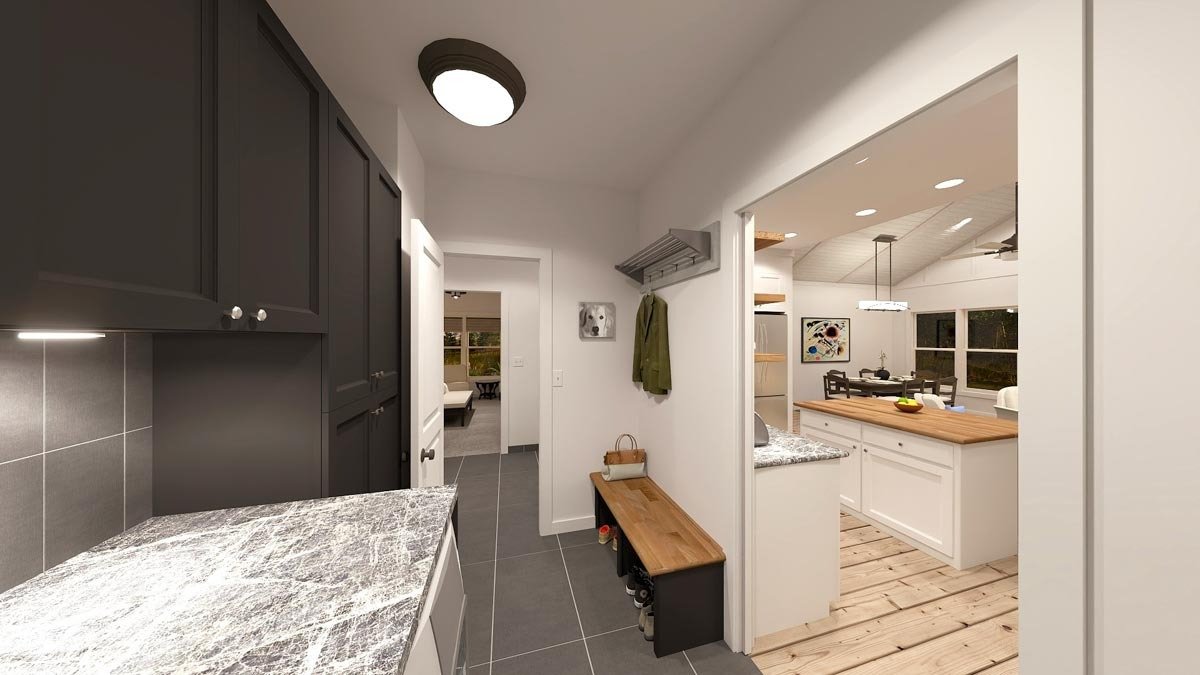 - The kitchen has an island and a convenient pantry and mudroom access.
